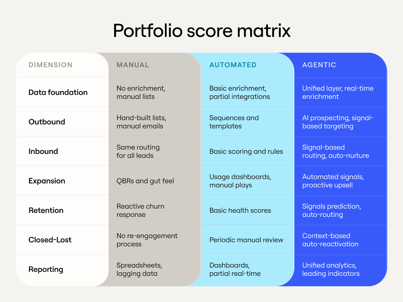 The firms that understand this distinction (infrastructure vs. tooling; system of action vs. system of record) are the ones building durable commercial advantages in their portfolios. Within 18–24 months, the practical expectation is that autonomous agents will be handling significant portions of account management, outbound sequencing, and expansion intelligence, while humans focus on relationship building and high judgment tasks. The companies that will be positioned to deploy those agents well are the ones building the data foundation and adopting the right infrastructure now.