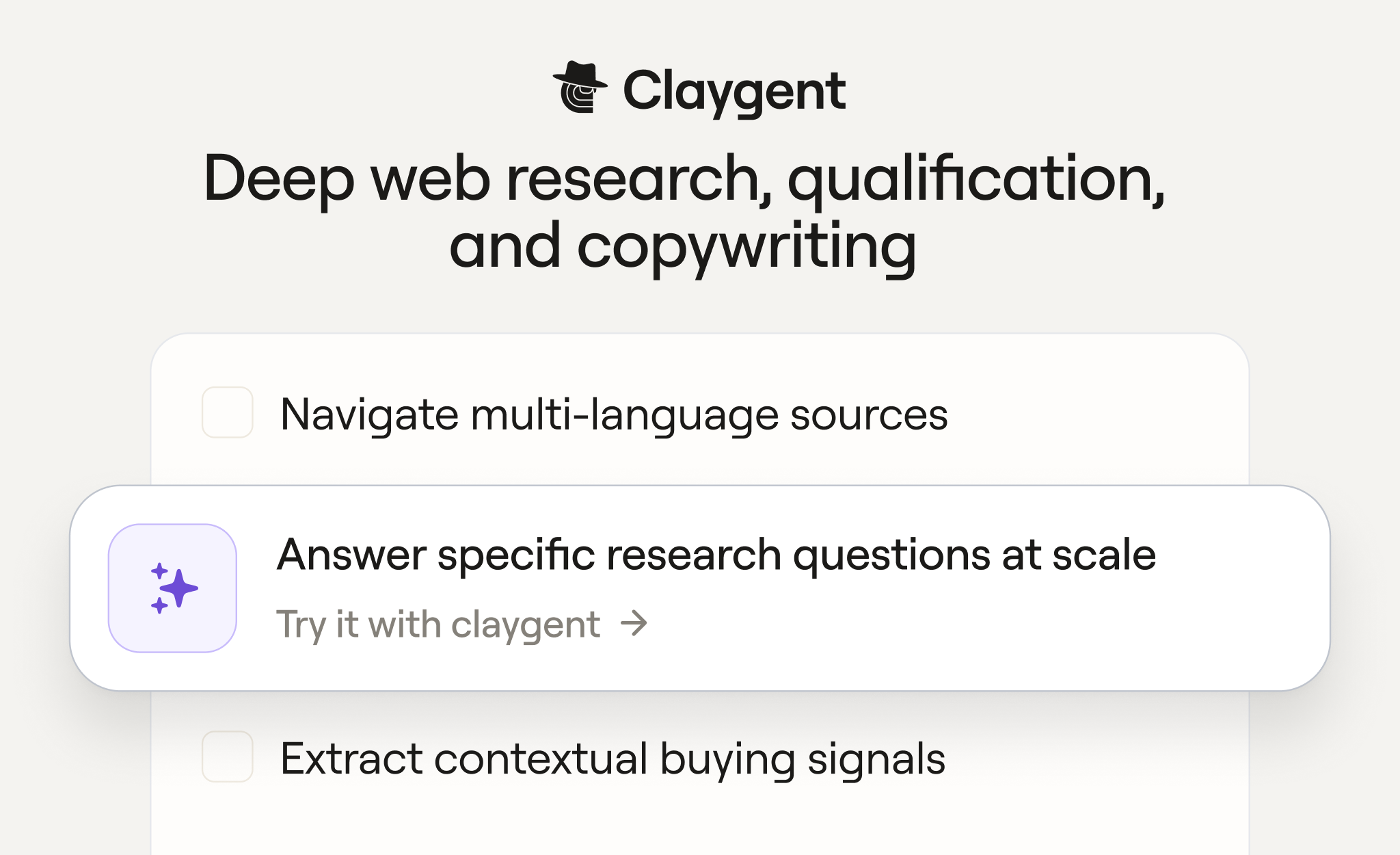 Clay's AI agent helps teams do deep web research, qualification, and copywriting