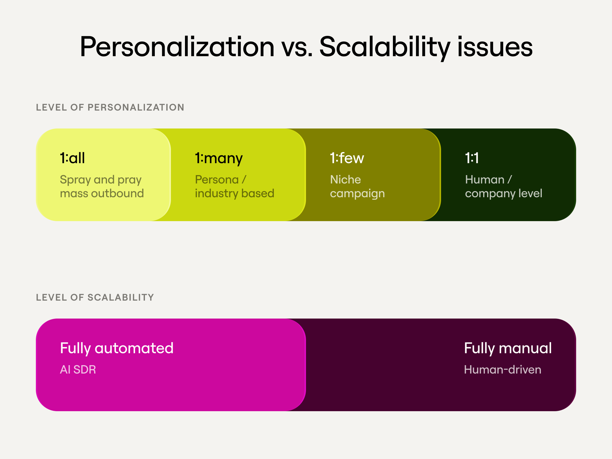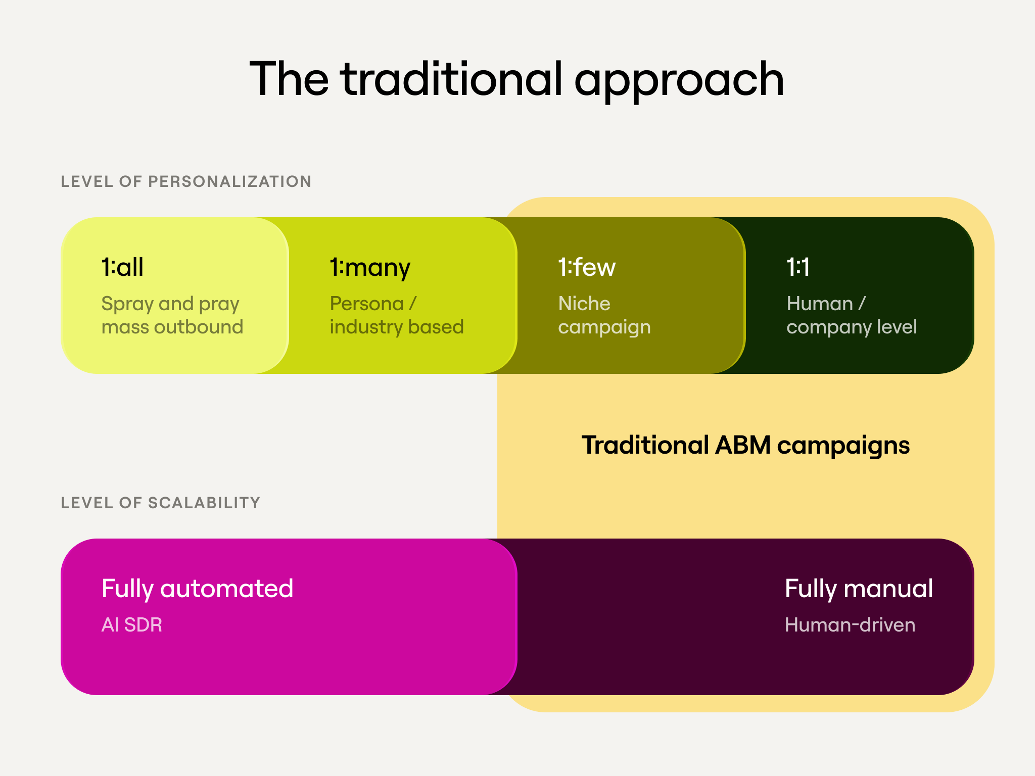 Account executives know this tension well. Every generic outreach that hits a tier 1 account is a small deduction from a finite, exhaustible amount of trust. SDRs feel it differently: they're making cold calls into companies where they have no context, no warm-in, and roughly 10 seconds to not get hung up on. Marketing, meanwhile, is under pressure to show activity which often means sending campaigns that prioritize volume over quality.