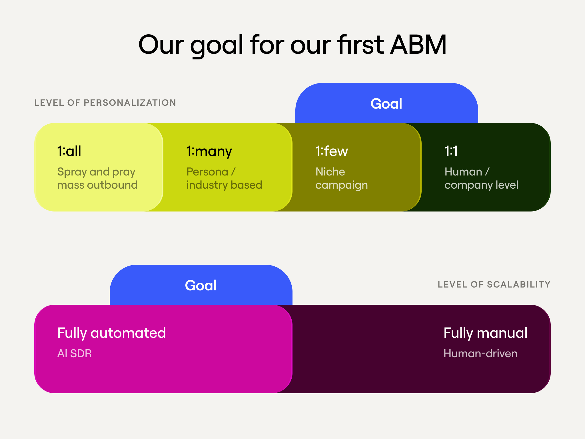 This matters because the point of the whole system is a coordinated effort across the company. Sales, SDRs, growth, and marketing are all running in the same direction, against the same accounts, at the same time. That coordination is what maximizes the yield your sales org gets from its prospecting, which in turn makes higher quota attainment realistic and shortens deal cycles on accounts that have been properly warmed up.