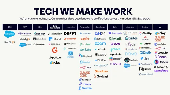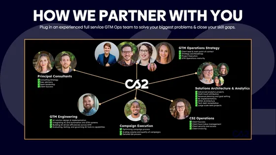 The CS2 team delivers GTM Operations for fast-growing B2B Tech companies (Notion, Gong, Coursera, Salesloft, Logitech, Scale AI, Writer, Livekit, and 100+ others). Helping them build the GTM architecture, data models, and AI automation/agents that drive pipeline and revenue.