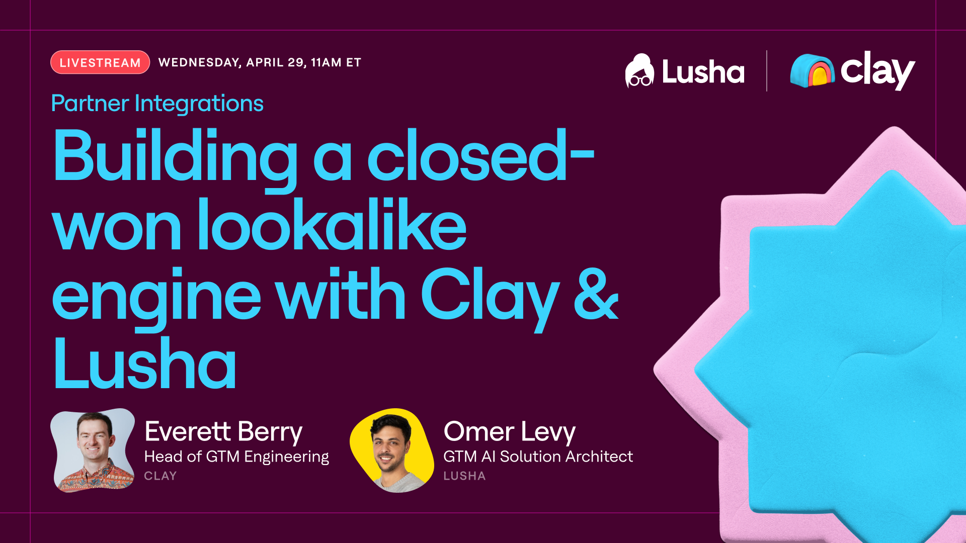 Everett Berry and Omer Levy will show you how to build a Closed-Won Lookalike Engine from scratch using Clay and Lusha