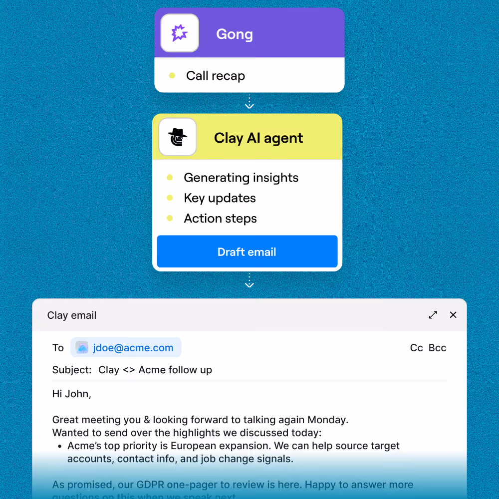 Give AI the context to precisely personalize email copy by combining 1p and 3p data tailored to your ICP. Auto-sequence outbound leads so reps get more time with prospects.