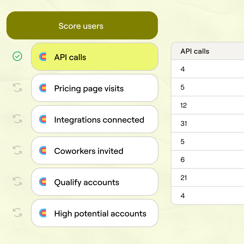 Combine product usage patterns, team expansion, and enrichment data to score and surface self-service users who fit your ideal customer profile, and show real buying intent.